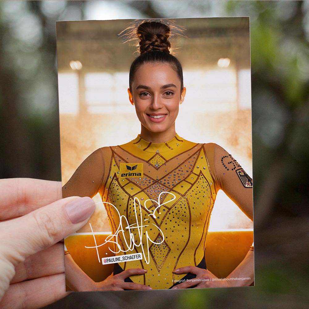 Diese Rebekka Haase Autogrammkarte ist handsigniert. Die Unterschrift ist nicht gedruckt. Die Autogrammkarte wurde persönlich von Rebekka Haase für dich unterschrieben. Die Autogrammkarte hat das Format DIN A6 und hat eine Größe von 10,5 × 14,8 cm.